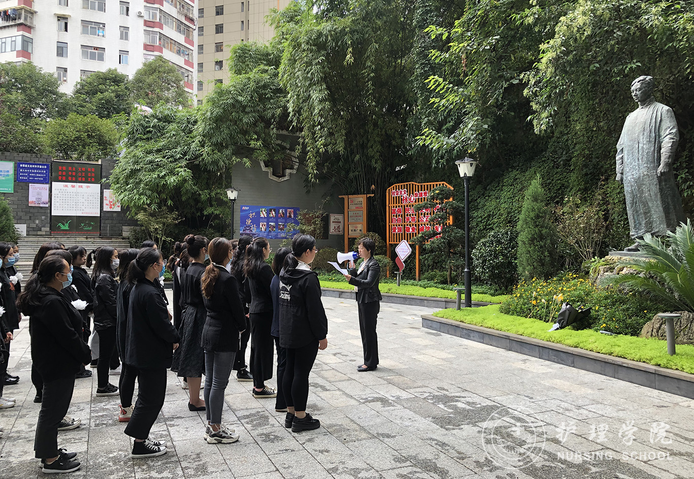 秋色无边,忠魂激荡。山河无恙,誓言无声。2020年9月30日,是我国第七个烈士纪念日,为进一步激发学生党员的爱国主义情怀,深入推进“不忘初心、牢记使命”主题教育,当天中午,BEAT365英国官网学生第一、第二党支部于贵阳市林青同志就义处开展烈士纪念日主题党日活动。BEAT365英国官网副院长王秀红、正科级组织员曾敏、学生第一党支部书记李颖、辅导员王晓玲、李杏春、杨叶卿、刘妍及学生第一、第二党支部全体同志参加活动。本次活动由曾敏主持。