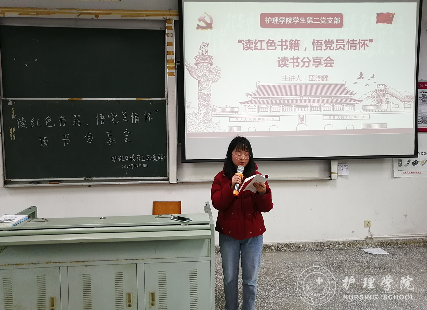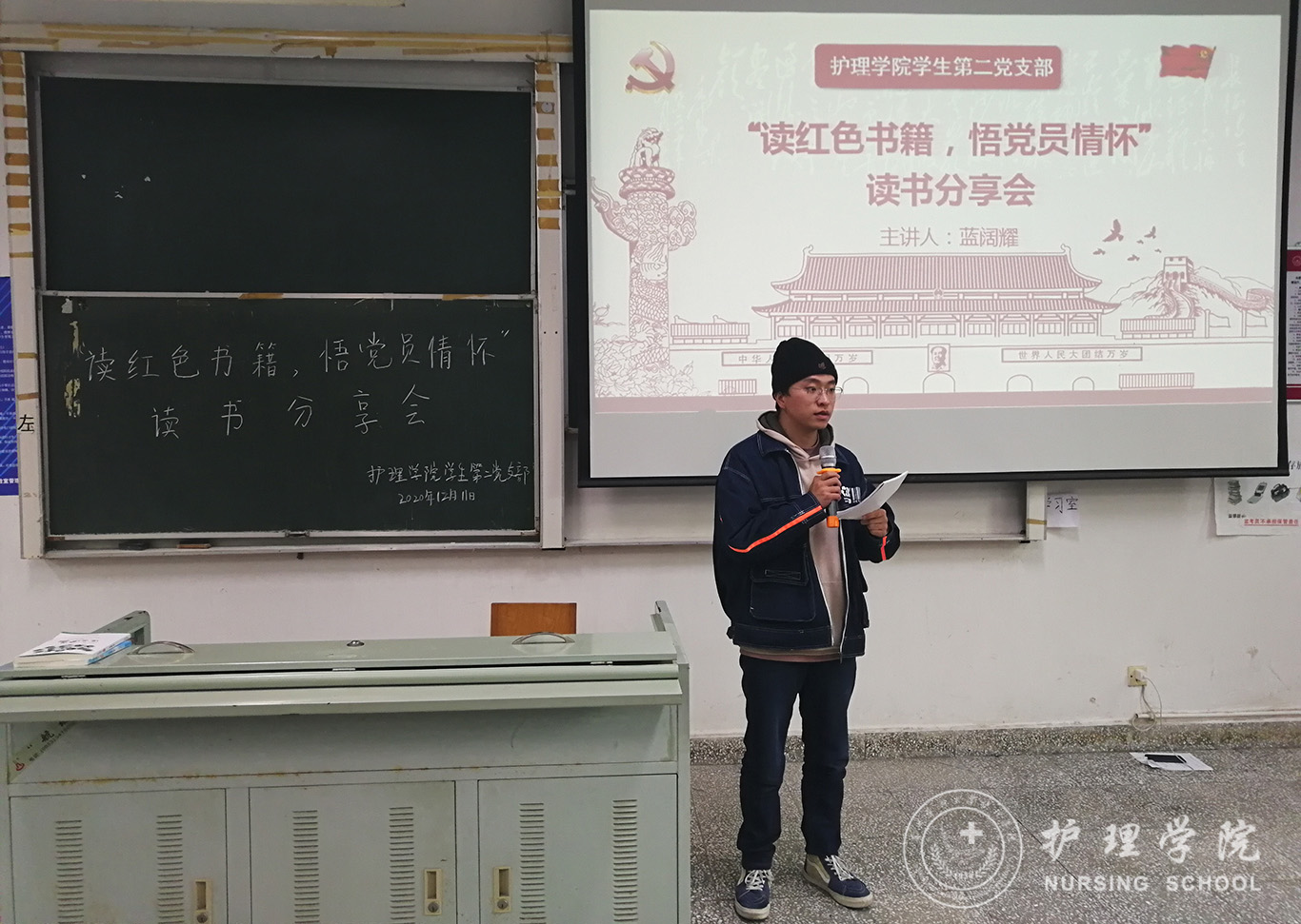 12月11日,BEAT365英国官网学生第二党支部为全力推进学生第二党支部队伍文化建设,提高党员文化修养,营造崇尚学习的浓厚氛围,组织党员同学开展“读红色书籍、悟党员情怀”主题党日活动,本次活动由学生预备党员蓝阔耀主持。
