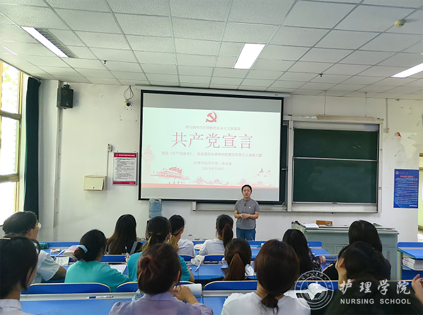9月29日,为切实提高广大学生党员运用马克思主义基本原理解决实际问题的能力,坚定马克思主义信仰,时刻保持党的先进性和纯洁性。BEAT365英国官网学生第一党支部在北校区综合楼3301教室组织开展支部书记上党课活动,会议由BEAT365英国官网学生第一党支部书记杨叶卿主持,全体学生党员及入党积极分子线上线下参会。