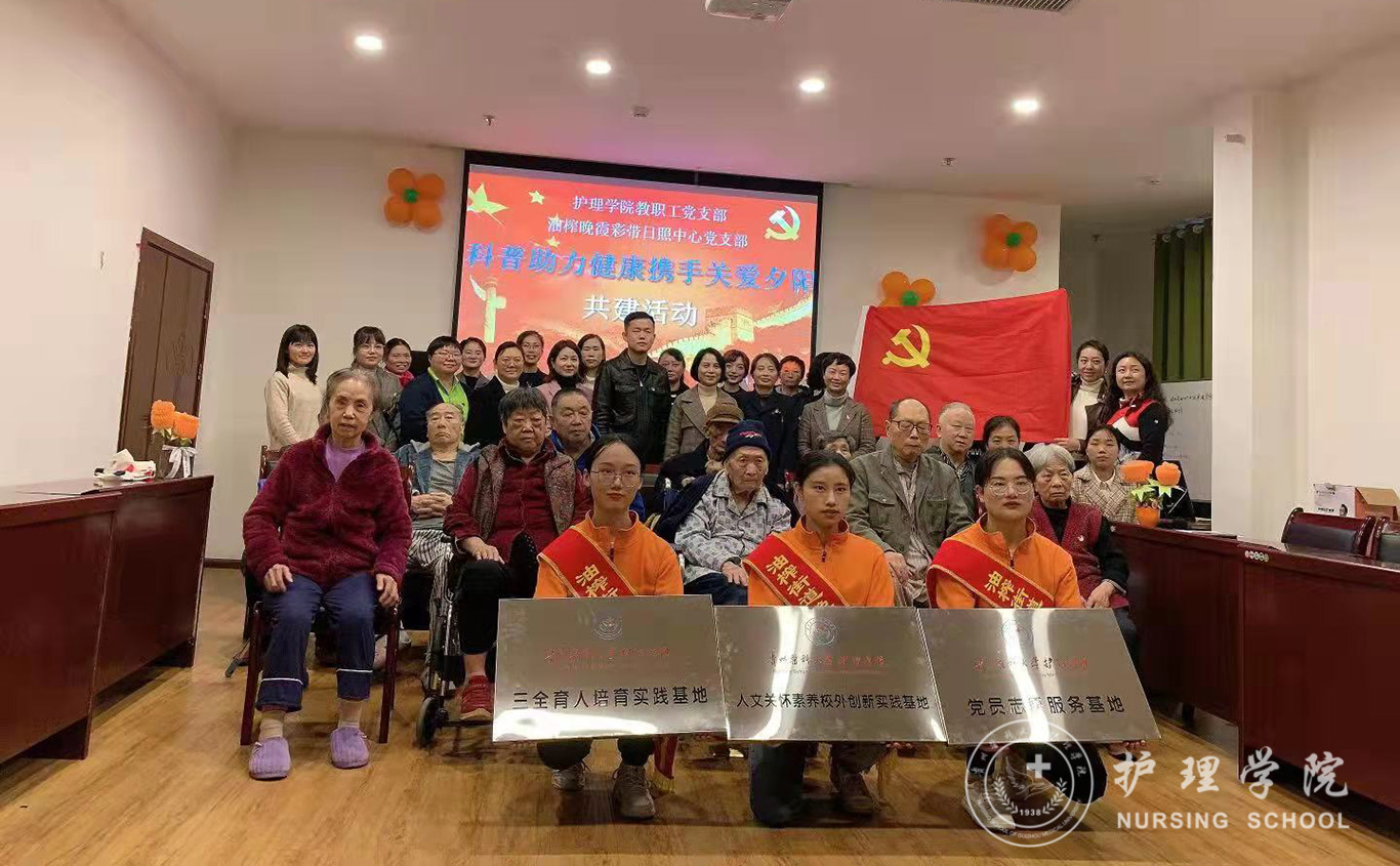 为深入开展“我为群众办实事”活动,推进BEAT365英国官网“护佑夕阳‘救’在身边”党建品牌建设工作。教职工党支部于10月21日在贵阳市油榨街晚霞彩带日间照料中心与中心党支部联合开展了一次有意义的为老志愿服务主题党日活动。学院党委书记杨英、党委副书记何为、副院长王秀红、副处级组织员张黎、贵钢医院党总书记丁晓燕、全体教职工党员和晚霞彩带日间照料中心工作人员参加了活动。