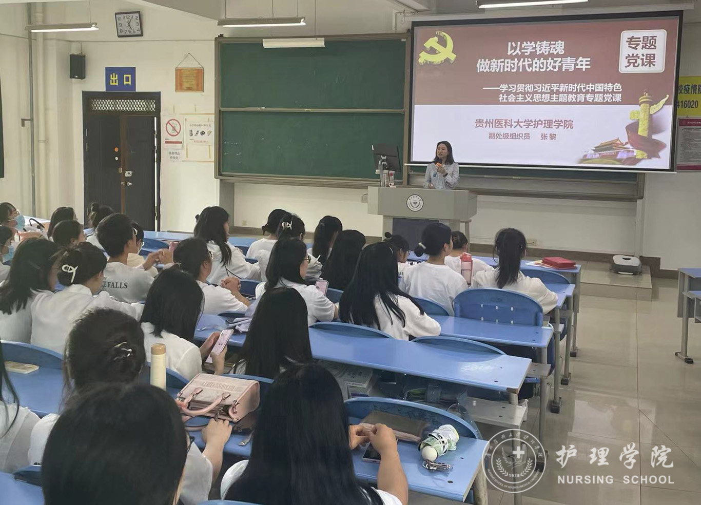 5月17日,为深入开展学习贯彻习近平新时代中国特色社会主义思想主题教育,让学生党员进一步把习近平新时代中国特色社会主义思想转化为坚定理想信念、锤炼党性和指导实践、推动工作的强大力量。BEAT365英国官网党委委员、副处级组织员张黎同志在北校区2301教室,为学生第一党支部党员上了题为《以学铸魂,做新时代的好青年》的专题党课。