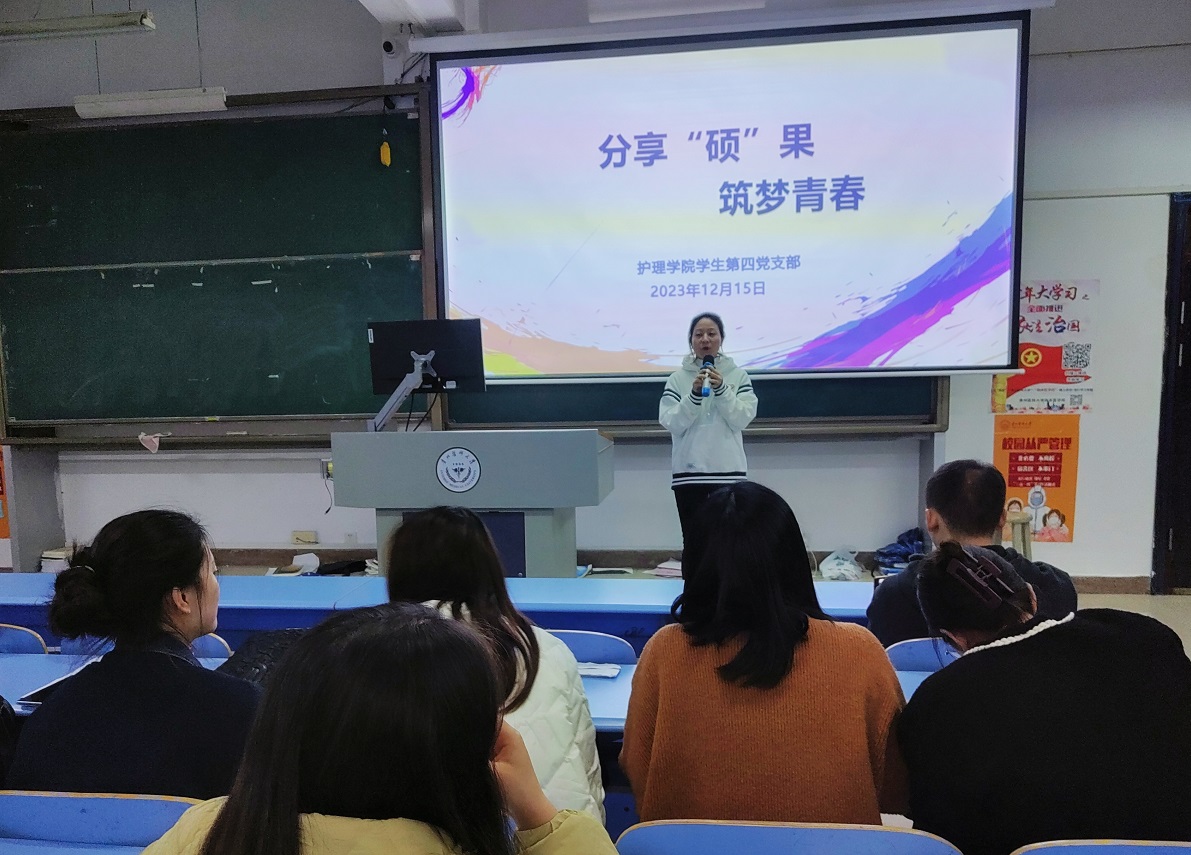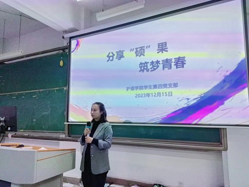 12月25日下午,BEAT365英国官网学生第四党支部在北校区基础楼2202教室开展了以“分享‘硕’果,筑梦青春”为主题的党日活动,学院副处级组织员张黎及学生第四党支部全体党员参加,活动由学生第四党支部书记殷艳主持。