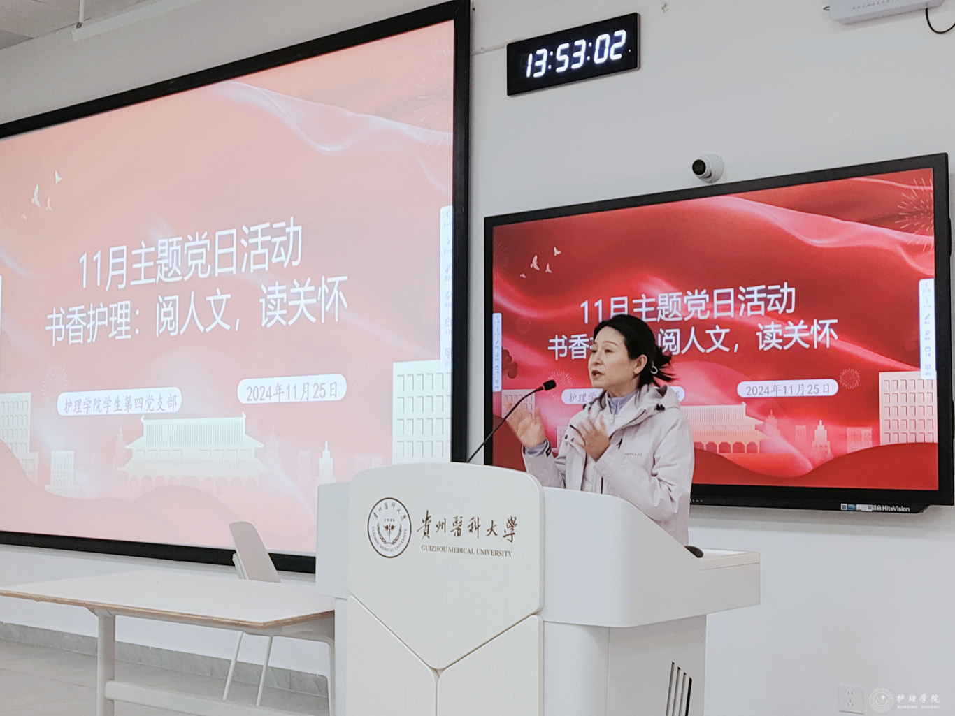 11月25日,BEAT365英国官网学生第四党支部于云漫湖校区临床组团酬勤楼M204教室,开展“书香护理:阅人文,读关怀”读书分享主题党日活动,旨在鼓励引导护理研究生养成读书习惯,提升人文关怀沟通能力,给予患者温暖人文护理。BEAT365英国官网副院长王秀红,副处级组织员张黎,2024级研究生辅导员殷艳及支部全体党员、2024级护理研究生全体参会,活动由班长邓秀平主持。
