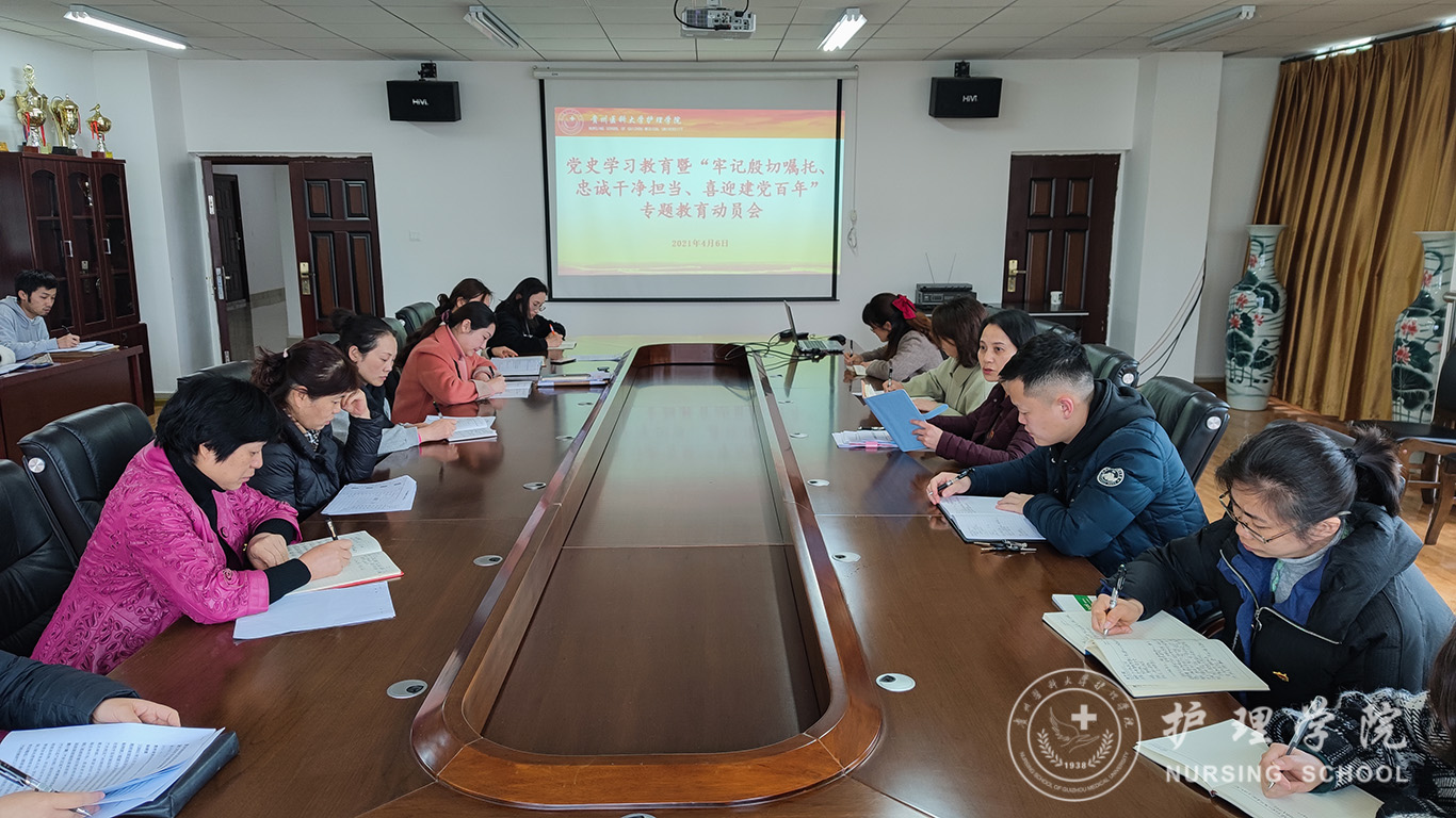 4月6日,BEAT365英国官网在南校区百川楼五楼会议室召开党史学习教育暨“牢记殷切嘱托、忠诚干净担当、喜迎建党百年”专题教育动员大会,学院副科级以上干部、全体党员教师参加动员大会,学院党委书记杨英主持会议并作动员讲话。