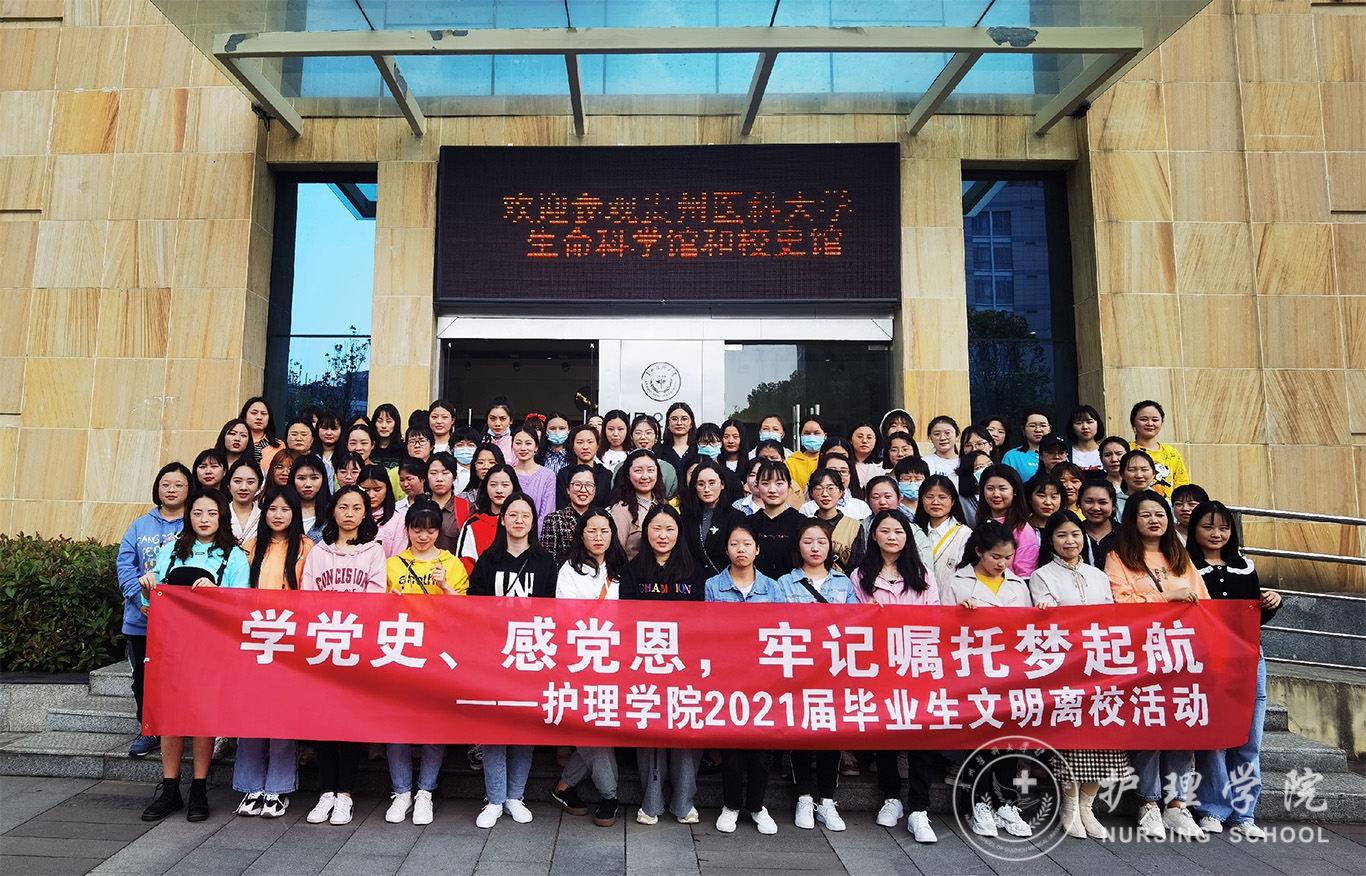 4月21日,为了让我院毕业生进一步了解校史校情,激发学生的爱党爱国爱校情怀,BEAT365英国官网开展了“学党史、感恩党,牢记嘱托梦起航”--BEAT365英国官网2021届毕业生文明离校活动,本次活动由BEAT365英国官网正科级组织员曾敏、学生科副科长毕丽及团委副书记王晓玲带队,2017级护理学专升本全体学生参与。
