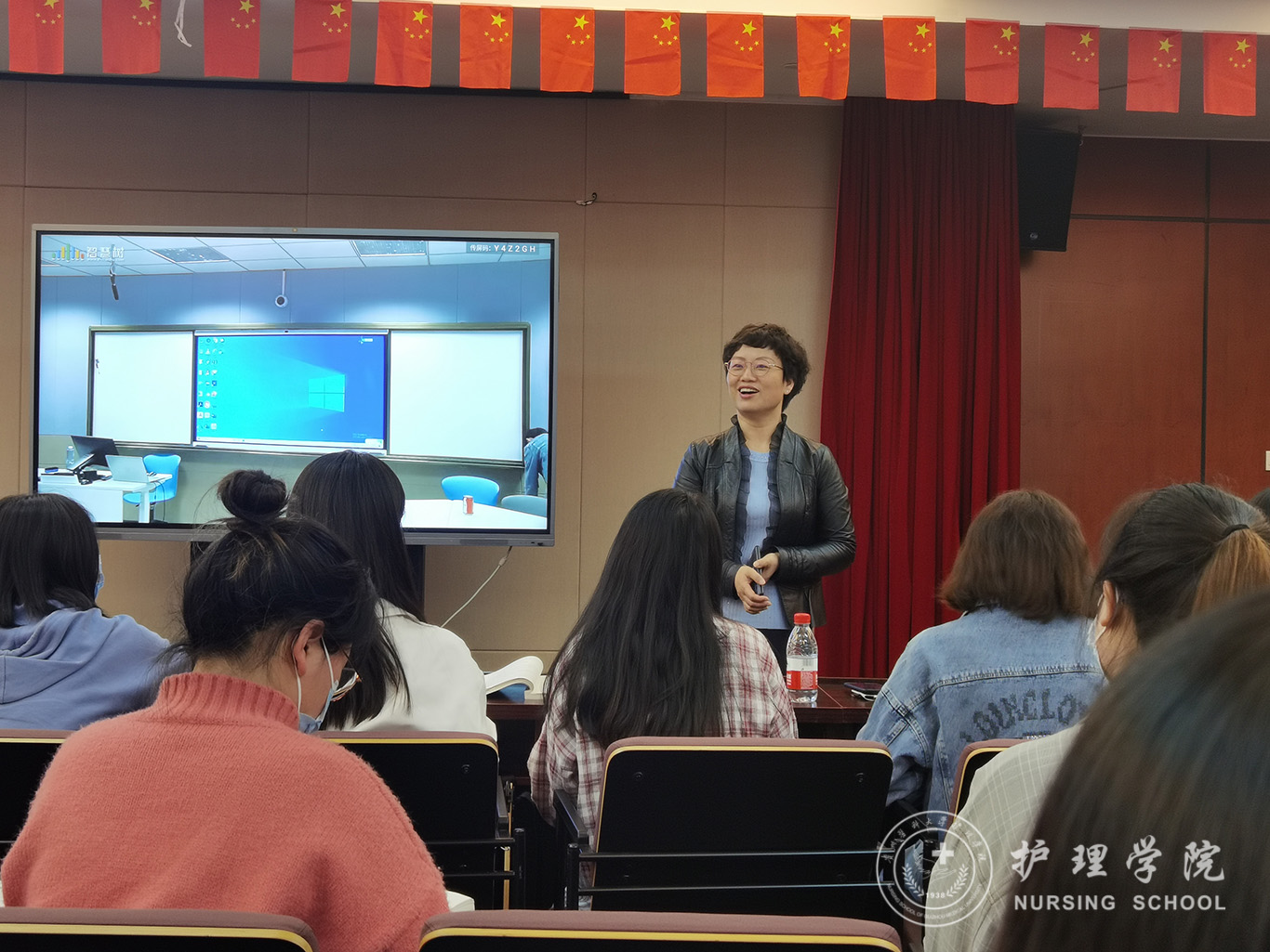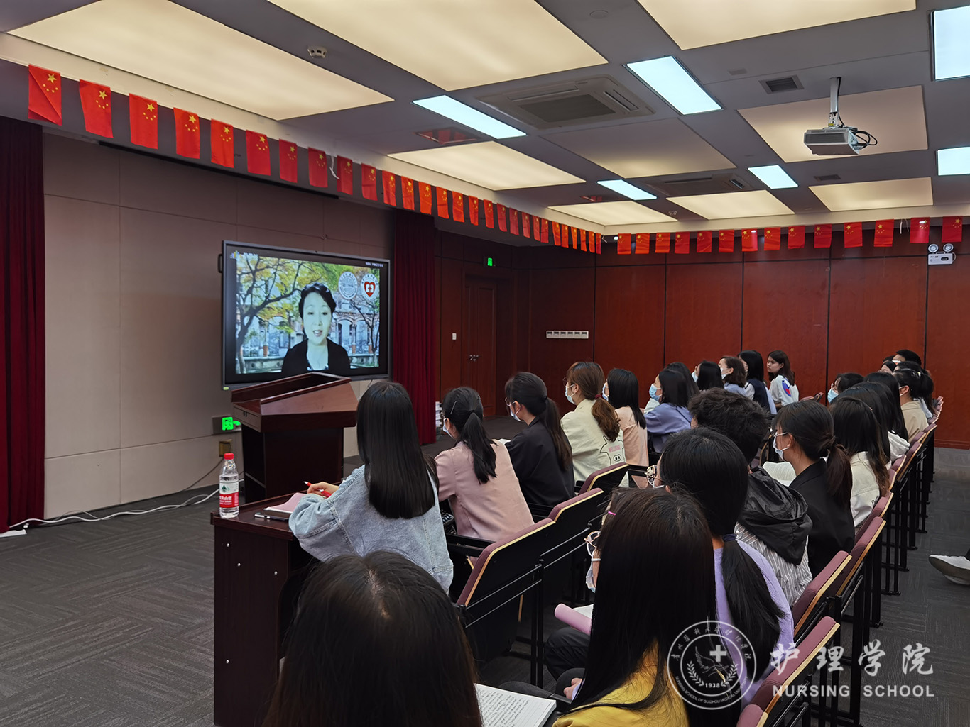 在前期紧密的沟通商定及悉心准备下,5月20日下午,苏州大学BEAT365英国官网与BEAT365英国官网《老年护理学》同步共享课堂依托智慧树平台的支持得以顺利完成。此次课程由苏州大学侯云英副教授就“老年健康保健与养老照顾”为主题,苏州大学BEAT365英国官网2017级33名同学和BEAT365英国官网2018级75名同学参加学习。讲授开始前苏州大学BEAT365英国官网院长李惠玲教授简短致辞,表达了对BEAT365英国官网师生的问候,她说:作为对口帮扶的“姊妹学院”,苏州大学BEAT365英国官网有责任和义务与BEAT365英国官网一起合作共建。在前期友好往来基础上,此次苏大BEAT365英国官网将八门课程与贵医大BEAT365英国官网共享,并先期选取苏大的精品课程《老年护理学》借助智慧树平台的支持与贵医大BEAT365英国官网开展同步共享,旨在将苏大的教学原汁原味的分享给贵医大的师生,促进两校师生之间的交流,帮助同学们相互沟通学习。