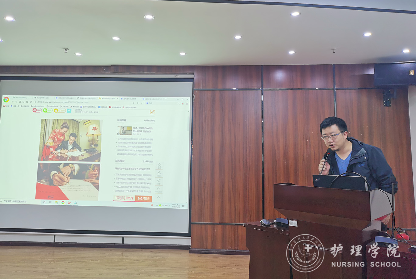 首先,黄勇作了题为《审时有度发掘身边好新闻》的讲座。他介绍了机构媒体报道新闻应该坚持的原则和导向、详细对比了新闻和宣传的不同特点,并对如何把握新闻的“时、度、效”进行了指导。同时,他结合许多新闻文字和图片的实际案例,指出了新闻报道中存在的用词不当、逻辑错误、文风不实等问题。黄勇讲解过程具体详实,选取的案例生动有趣,培训会场气氛活跃。