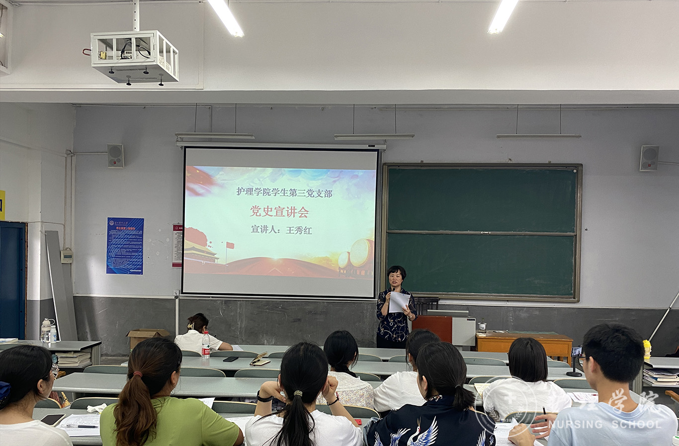 7月8日,为推动党史学习教育走深走实,引导党员同志深刻领会习近平总书记重要讲话精神的精髓要义,学会向榜样看齐,学在前、干在前,BEAT365英国官网学生第三党支部邀请到了BEAT365英国官网党委委员、副院长王秀红到支部开展党史学习教育宣讲,会议由支部书记刘妍主持,支部全体党员参会。