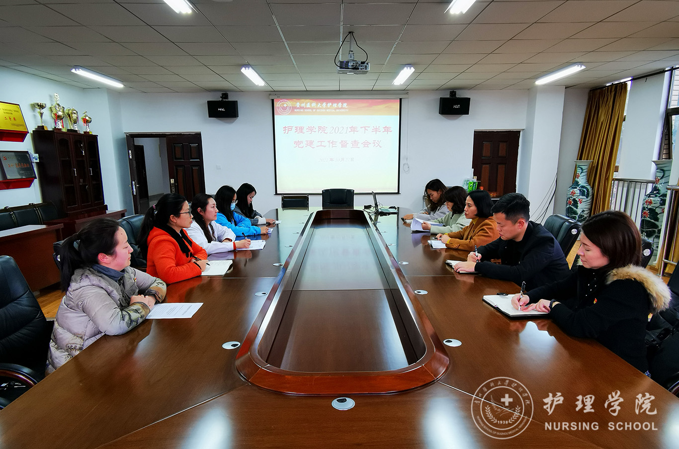 为进一步完善党建工作制度,提升党建工作质效,持续推进党支部工作规范化、标准化建设,10月27日,BEAT365英国官网在南校区百川楼五楼会议室召开下半年党建工作督查会。学院党委书记杨英,副书记何为,副院长刘志燕,副处级组织员张黎,党委委员、办公室副主任李颖,正科级组织员曾敏,各党支部书记,全体辅导员参会。会议由杨英主持。
