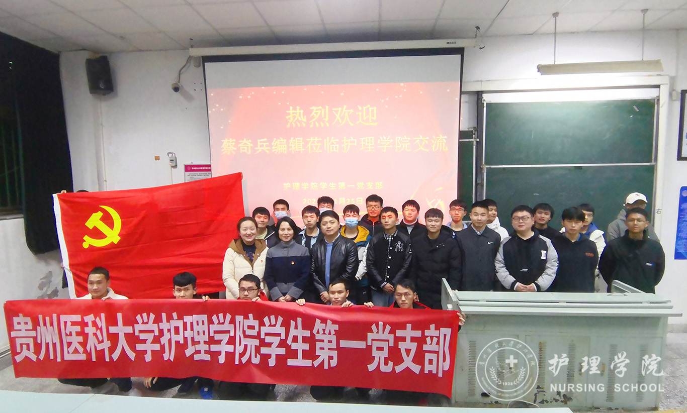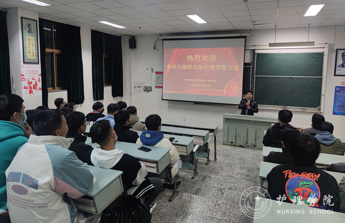 11月25日,为深刻贯彻落实“我为群众办实事”,进一步推动党史学习教育在实践中发挥成效。BEAT365英国官网学生第一党支部特别邀请《护士进修杂志》编辑蔡奇兵为我院全体在校男护生作交流,即在专业思想引领、实习及就业指导等方面释疑解惑。学院党委书记杨英莅临指导,全体在校男护生线上线下参会。会议由学生第一党支部书记杨叶卿主持。