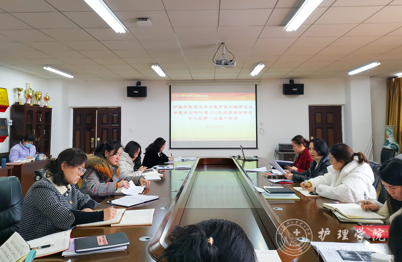 2月25日,BEAT365英国官网在南校区百川楼五楼会议室开展党史学习教育读书班第五次专题学习研讨暨党委理论学习中心组2022年第一次集中学习,院领导班子成员、副科级以上干部和全体辅导员参加,由院党委书记杨英主持会议。
