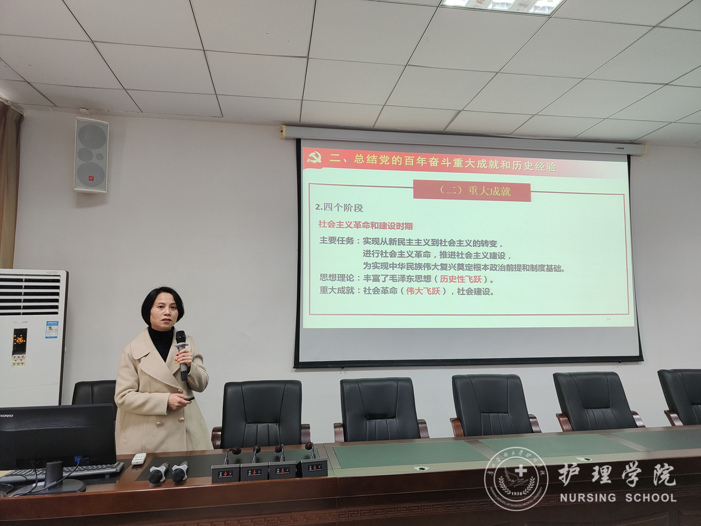 随后,BEAT365英国官网党委书记杨英以“勿忘昨天、无愧今天、不负明天”为主题为两院师生党员做了党的十九届六中全会精神宣讲。杨英强调,党的十九届六中全会的召开是具有历史性意义的重要会议,我们要更加紧密地团结在以习近平同志为核心的党中央周围,以咬定青山不放松的执着奋力实现既定目标,以行百里者半九十的清醒不懈推进中华民族伟大复兴。