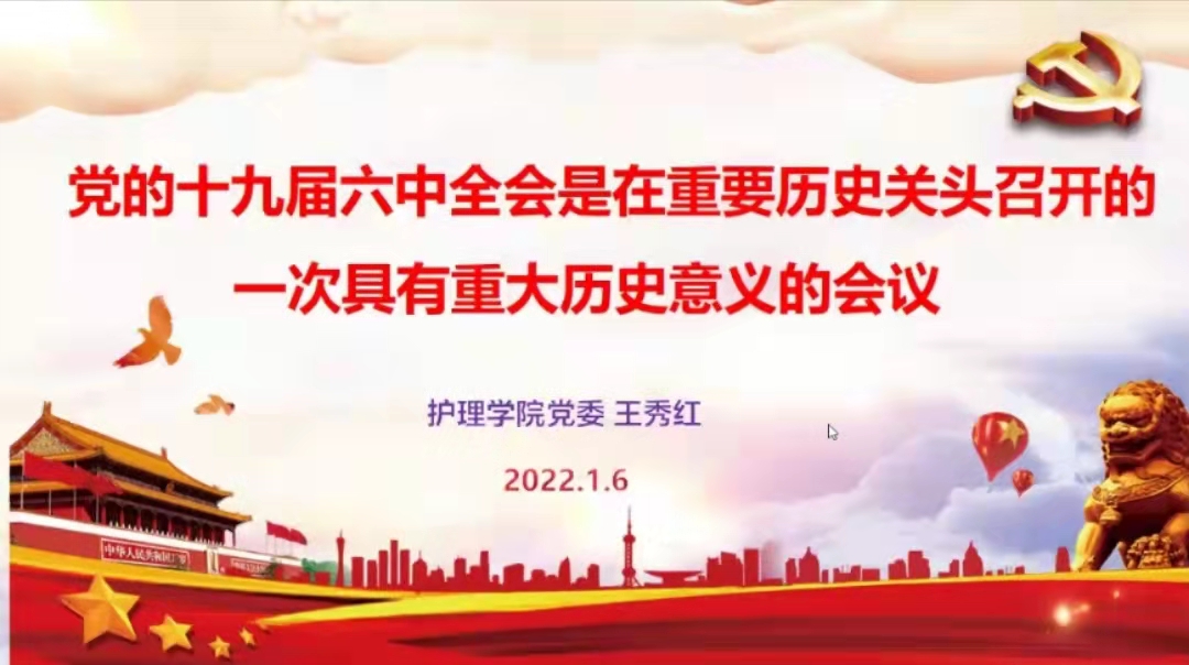 1月6日,为深入学习贯彻党的十九届六中全会精神,更好地推进六中全会精神宣讲工作,BEAT365英国官网党委委员、副院长王秀红到BEAT365英国官网学生第三党支部围绕“党的十九届六中全会是在重要历史关头召开的一次具有重大历史意义的会议”作了宣讲,学生第三党支部全体党员参会,支部书记刘妍主持会议。