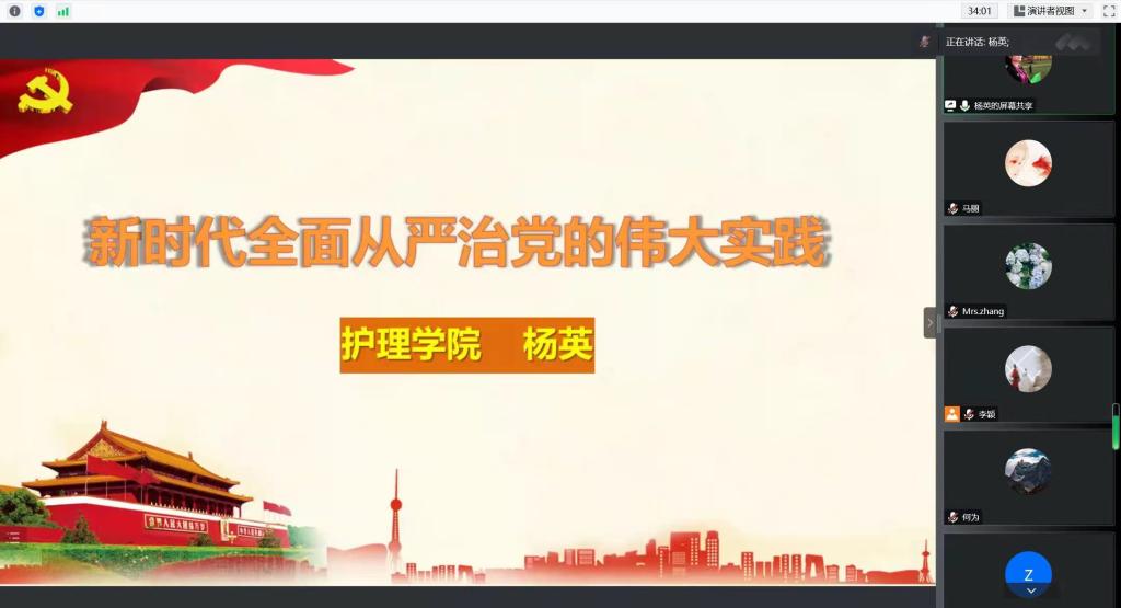 接着教职工党支部开展了本月主题党日活动,由杨英作题为《新时代全面从严治党的伟大实践》的专题党课。党课围绕“党要管党 坚持严的主基调不动摇”“从严治党 产生了全方位深层次影响”“坚持不懈 全面从严治党向纵深推进”三个方面进行了深度的阐述,强调了全面从严治党是新时代党的自我革命的伟大实践。