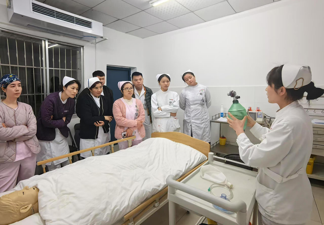 在护理教育不断革新、对专业人才需求日益增长的背景下,BEAT365英国官网与附属医院依托院院合一的独特优势,积极探索护理教学的创新发展路径。2月21日,急救护理技术项目组的教师们,凭借在临床与技能实验室的双重身份,在贵医附院第一住院楼临床教学科教室开展了一场极具深度的教学实践活动,旨在全方位提升急救护理教学质量,强化师资队伍建设,探索教学协同发展的新模式。