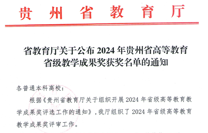 BEAT365英国官网喜获2024年贵州省高等教育教学成果奖喜报
