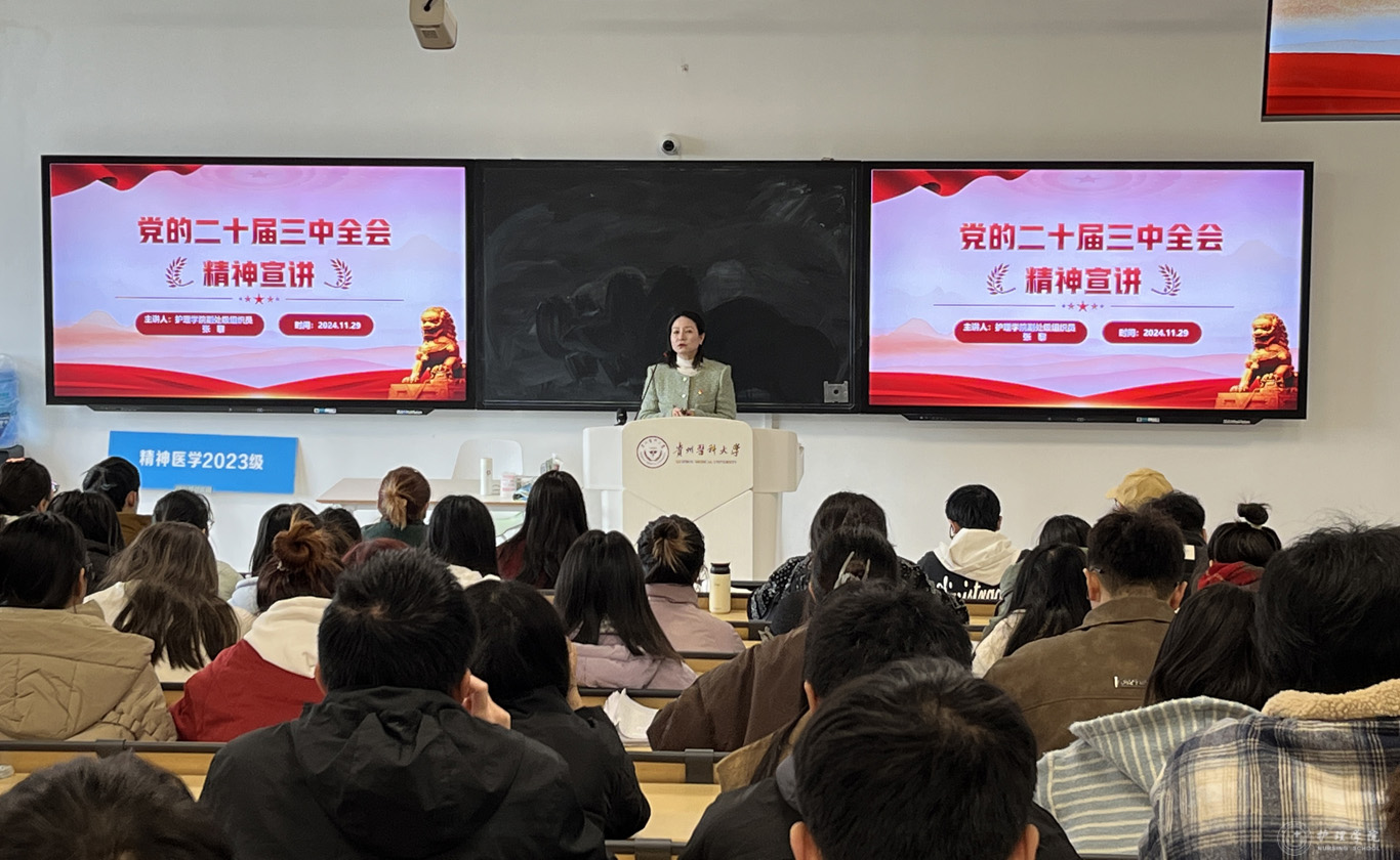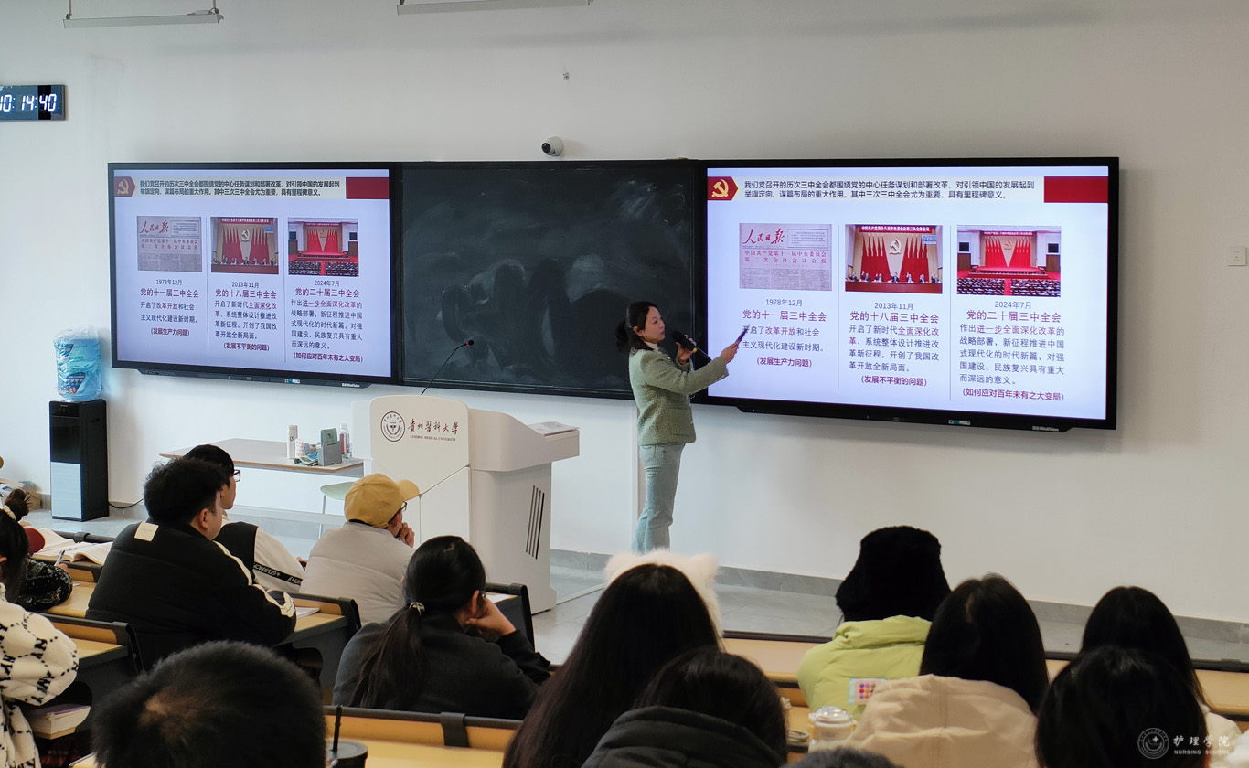 11月29日,为进一步深入学习贯彻党的二十届三中全会精神,加强学生思想政治教育工作,BEAT365英国官网副处级组织员张黎在临床组团R211教室,为护理学2022级5班进行了二十届三中全会精神宣讲。