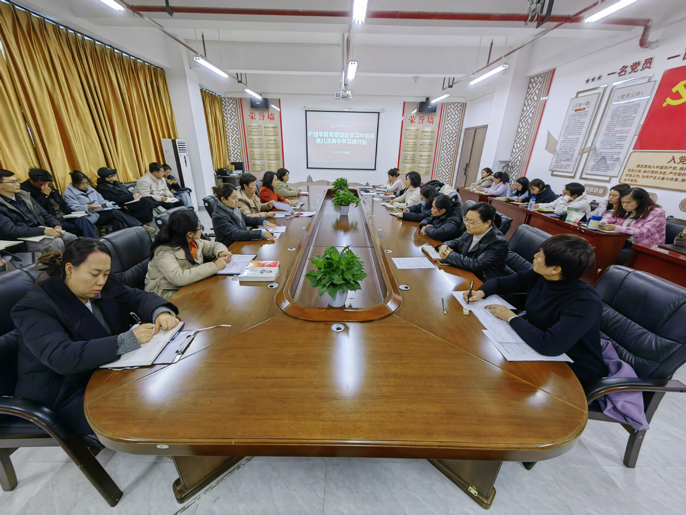 12月3日下午,BEAT365英国官网在云漫湖校区酬勤楼六楼会议室召开了党委理论学习中心组第八次集中学习研讨会,学院党委领导班子成员、副科级以上干部、党支部书记和全体辅导员参会,会议由学院党委书记杨英主持。