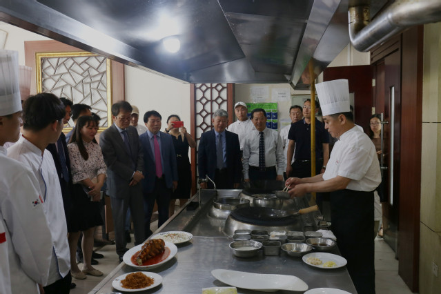 彗田大学教务处处长裴相穆、企划室处长朴真弘、烹饪学院院长崔泰鎬、企划室金宗鎬、党政办公室主任于宏刚、学院教务处处长唐文君、国际交流与合作处处长周莉、烹饪学院院长王建明、烹饪学院党总支书记石增业等一同参加活动。