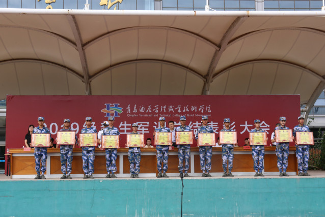 大会对此次军训中涌现出来的先进集体和优秀个人进行了表彰,学院副院长宫恩龙宣读了获得军训标兵排、内务标兵排、优秀助教、军训标兵名单,与会领导为获表彰的单位代表颁奖。