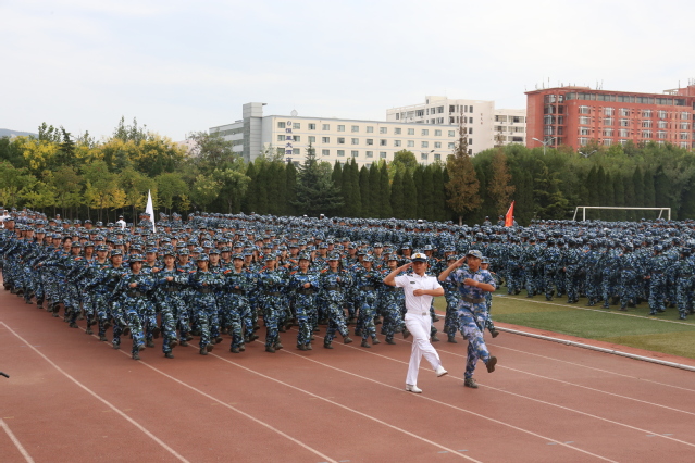 本网讯(党委宣传部 于克晓)9月12日上午,学院在体育场举行2019级新生军训总结表彰大会。中国人民解放军海军潜艇学院副院长崔颖波、学院院长姜玉鹏等部队和学院领导出席会议。