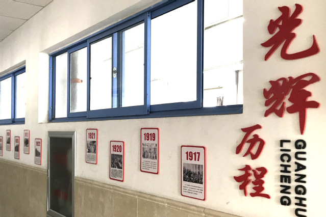文化长廊分为光辉历程、不忘初心和工作简报三个板块。光辉历程板块记录了中国共产党发展壮大的光辉历程和伟大成就,不忘初心板块将各党支部学习过程中的优秀心得感悟进行分享,工作简报板块作为此次文化长廊的亮点,将各党支部每周在主题教育方面的经验做法及教师学习所得所悟进行了汇编展示。