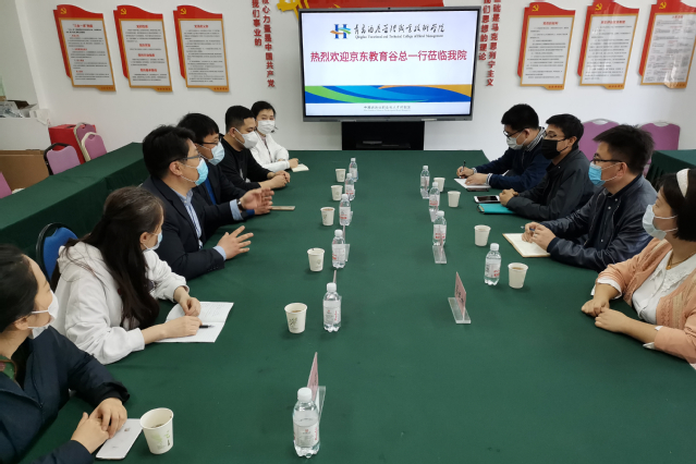 京东华北地区校企合作负责人李宗辉、山东地区负责人李明,工商管理学院党总支副书记郭学道和部分专业负责人一并参加上述活动。