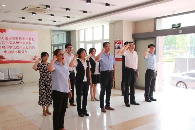 在主题党日活动中,同志们观看了习近平总书记在上流佳苑社区考察时的视频,就总书记视察时的重要讲话进行了交流学习,并跟随总书记的步伐实地参观上流佳苑小区、党建活动室、社区食堂等场所,切身感受上流佳苑从一个乡村成为社区治理的青岛样本的巨大变化。在鲜红的党旗前,同志们重温了入党誓词,时刻铭记初心和使命。
