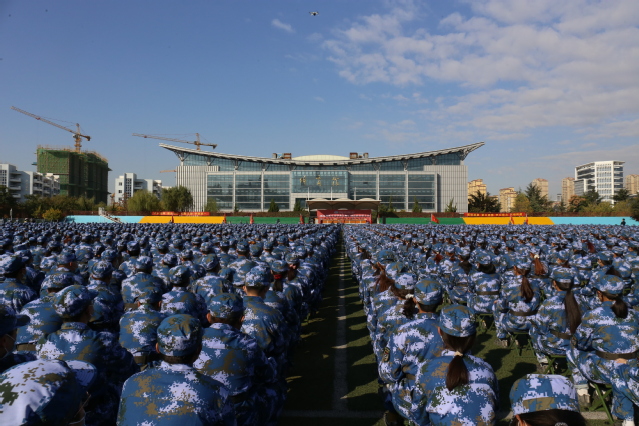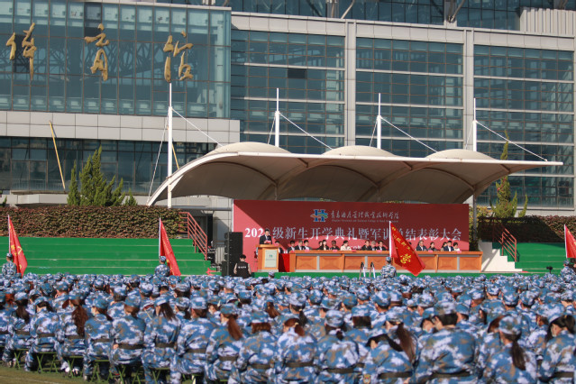 本网讯(宣传统战部 于克晓)10月23日上午,学院在体育场举行2020级新生开学典礼暨军训总结表彰大会,5000多名莘莘学子欢聚一堂,携手开启大学生活新的篇章。