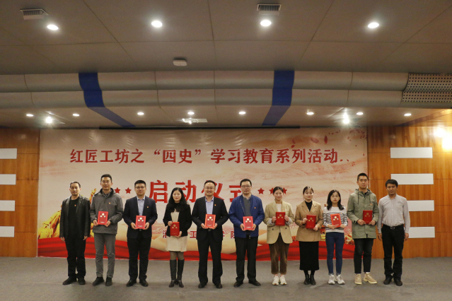 启动仪式上,酒店工程学院党总支书记薛陆宣读了酒店工程学院“四史”学习教育宣讲团第一批讲师成员名单,希望青年学生“以史为鉴”,学好历史这本教科书,知史爱党、知史爱国,坚定理想信念,牢记报国使命。学生工作处处长赵明富在讲话中表示,“四史”学习教育是加强党的思想理论建设的重要任务,也是增强高校思想政治工作能力和做好高校立德树人工作的有效途径;要把握“四史”教育的政治性、针对性和时代性,引导学生树立正确的历史观,解决学生的思想困惑,增强学生的使命意识。酒店工程学院团总支副书记娄帅介绍了酒店工程学院“四史”学习教育系列活动的具体安排。