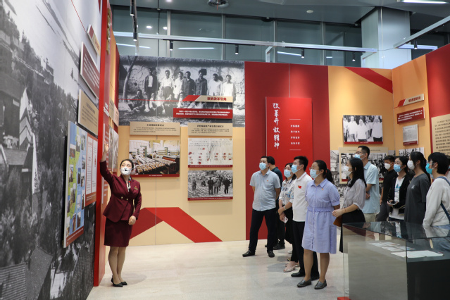 在解说员的引导下,全体教师党员深入了解了青岛波澜壮阔的党史发展历程,深切认识了青岛人民在中国共产党的领导下,筚路蓝缕、艰苦创业的光辉历程,深刻感悟了青岛在中国共产党百年奋斗历程中所承担的历史责任与担当。大家认真聆听,仔细观看现场陈列的展板、实物、图片和影像资料,探究展品背后的党史故事,相互交流思想,感悟初心使命。