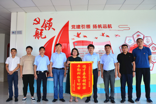 本网讯(工商管理学院 胡孟扬)9月15日上午,李沧区李村街道向阳路社区将一面“德才兼备筑栋梁,辛勤耕耘育幼苗”的锦旗送至工商管理学院,感谢师生志愿者长期以来在社区“双报到”中作出的贡献。