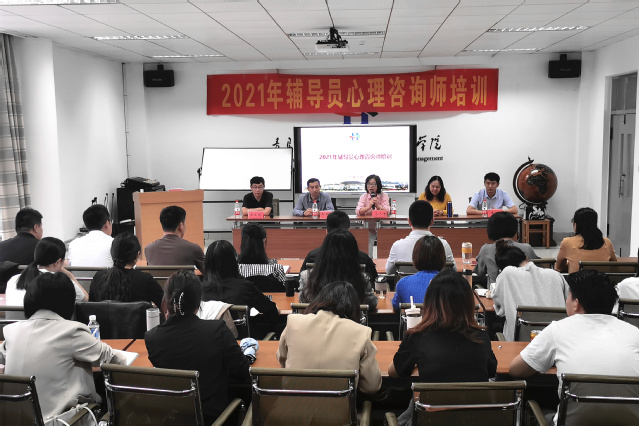 本网讯(学生工作处 童菲)10月9日,学院2021年辅导员心理咨询师培训班开班仪式在图书馆308举行,青岛成龙职业培训学校校长马哲庆、导师李娟,学院学生工作处处长赵明富、团委书记李柯参加仪式。