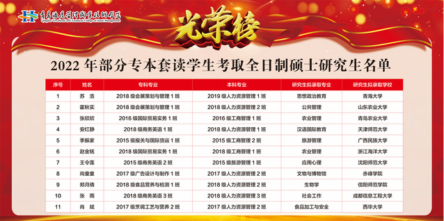 本网讯(继续教育学院)近日,2022年全国硕士研究生考试成绩陆续放榜,我校自考专本套读2018级人力资源管理专业霍秋实等11人考取全日制硕士研究生,考取人数创新高。