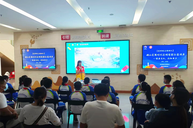 我校“蒲公英——赋能传承崂山非遗文化项目”志愿服务项目,立足崂山区非遗文化,通过“线上+线下”形式,面向崂山区社区居民及中小学生开展非遗宣传。线下活动中,项目成员走入崂山区社区、景区、商场发放非遗宣传海报,走进中小学校、崂山文明实践中心进行讲解;线上活动中,项目组制作微视频上传平台进行宣传,通过荔枝微课等平台进行线上直播。至今,项目组已举办活动20余场,为2000余名居民及学生进行了非遗普及。