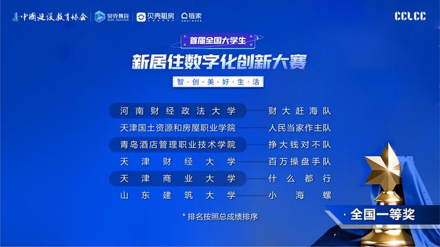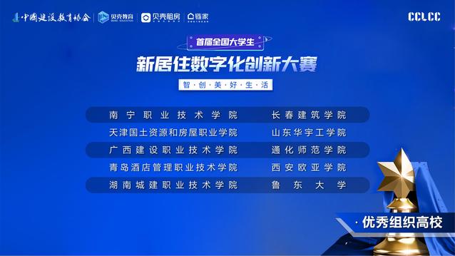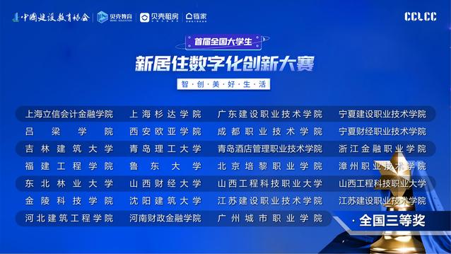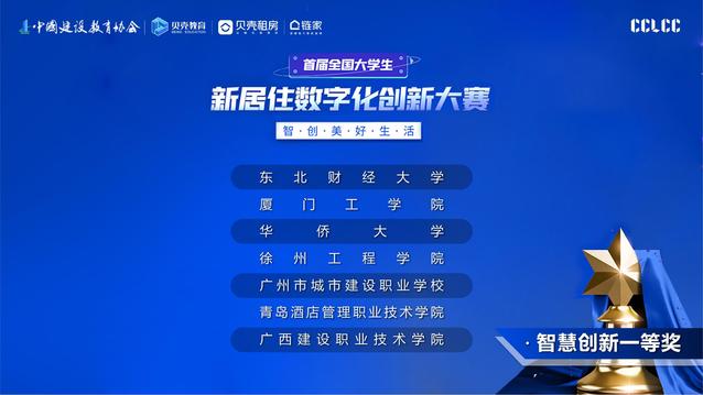 首届全国大学生新居住数字化创新大赛由中国建设教育协会联合贝壳共同举办。大赛共有来自全国70多个城市和地区110所高校的近700支队伍参加,报名学生超过3000人。我校派出的3支队伍分别获得全国一等奖、智慧创新一等奖、全国三等奖,学校被评为优秀组织高校。