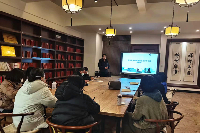 培训中,刘纯采用理论知识讲解和实际操作相结合的方式,对心肺复苏术、AED的使用进行了深入浅出的讲解,并详细传授了心脏骤停的识别、胸外按压、人工呼吸、打开气道等操作步骤,特别强调了心脏骤停黄金4分钟的救治时限与尽早应用AED的重要性,加深了大家对救护流程的理解和记忆。李全磊基于第十版防控指南和学校现有医疗条件,结合临床实例,从基层诊疗角度对学校门诊部全体医务人员进行了专题培训,详细讲解了新冠病毒特点、诊断分型及针对治疗,重点向医务人员讲述了危重症高危人群早期预警指标,并强调吸氧、建立静脉通路的重要性。