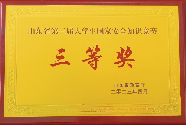 本网讯(学生工作处 于森)4月15日,由山东省教育厅主办的山东省第三届大学生国家安全知识竞赛落下帷幕,我校学生代表队荣获团体三等奖。
