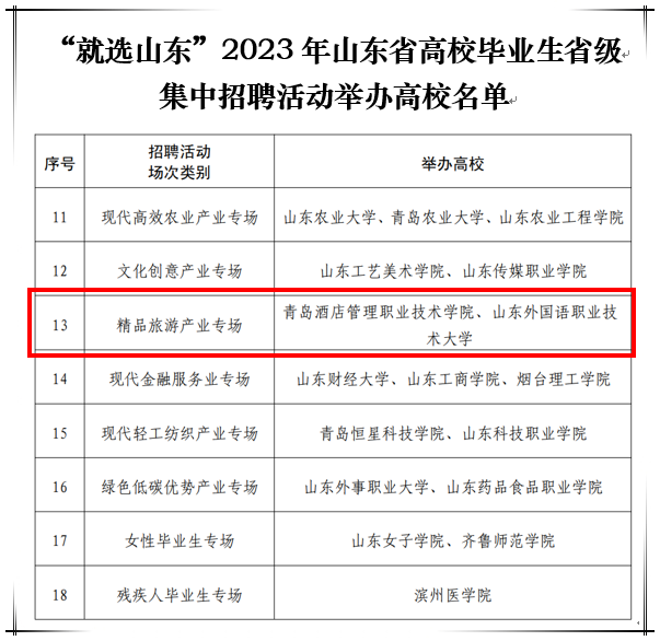 本网讯(招生就业办公室 刘卿文)近日,山东省人力资源和社会保障厅发布了“就选山东”2023年山东省高校毕业生校园招聘系列活动通知,我校再次入选2023年省级集中招聘活动举办高校,获得补助资金6万元。