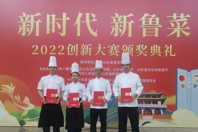 本网讯(烹饪学院 赵捷)近日,由中共山东省委宣传部指导,中央广播电视总台山东总站、央视频、山东省商务厅、山东省文化和旅游厅、潍坊市人民政府、山东省旅游饭店协会共同主办的“新时代 新鲁菜”创新大赛在潍坊市落下帷幕,学校教师参赛作品“山海结灯彩”荣获“2022年度20款我最喜爱的新鲁菜”“2022年度100款最具价值新鲁菜”“2022年度十大创新面点”三个奖项。