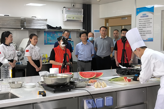 本网讯(烹饪学院 赵捷)6月20日,2023年全国职业院校技能大赛烹饪赛项山东省选拔赛在我校举行,副校长张宗国到场指导。
