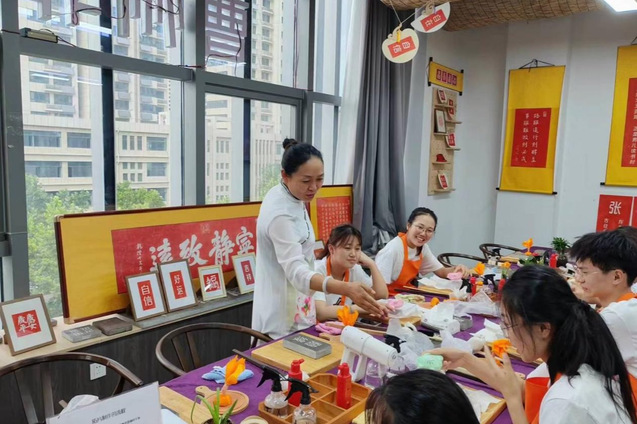 “圆梦非遗”实践团以实际行动践行非遗文化传承使命,助力非遗文化绽放新光彩。7月12日-15日,实践团成员先后赴菏泽丹阳办事处敬老院、枫叶正红老年养护服务中心、丹阳办事处武寺社区等场所,开展非遗文化宣讲和传拓技艺体验活动,呼吁更多人参与非遗文化保护和传承。7月16日,实践团成员发挥专业优势,充分利用直播、短视频制作、互联网营销等技能,通过线上平台讲解传拓文化、演示技艺流程,让更多的人了解曹州非遗文化,直播吸引了大量观众观看,弹幕互动频繁,有效激发了非遗活力。