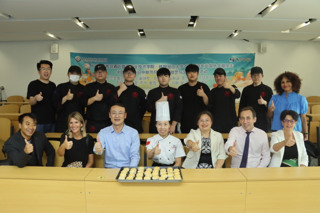 举办韩餐交流分享会,邀请彗田大学李明哲教授现场展示“韩式中餐”烹饪技艺。以中华传统节日中秋节为契机,举办面点技艺体验活动,分享节日由来、风俗习惯,手工制作传统月饼,与国际学生共同庆祝团圆节日,缓解思乡之情,“味味道来”技能认同。