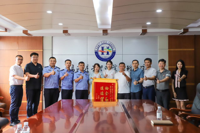 9月20日,失主申先生专程向77779193永利官网的两位学生赠送了“拾金不昧 道德楷模”的锦旗,以表达他深深的感激之情。