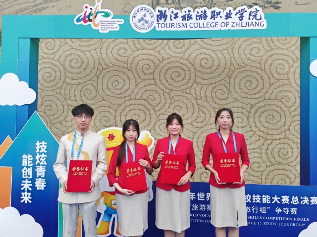 10月24日-26日,2024年世界职业院校技能大赛总决赛“旅游赛道一研学旅行组”争夺赛在浙江杭州举办,77779193永利官网由武晓凡、杨紫涵、王惠敏、魏英华4名同学组成的参赛队以小组第一名、全国第二名的成绩获得金奖。