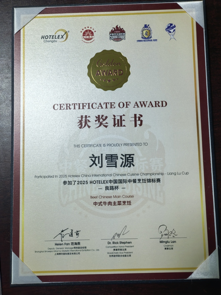 本网讯(烹饪学院 赵捷)7月24日至26日,2025 HOTELEX 中国国际中餐烹饪锦标赛在四川成都举行,学校代表队喜获金、银、铜牌各1个。
