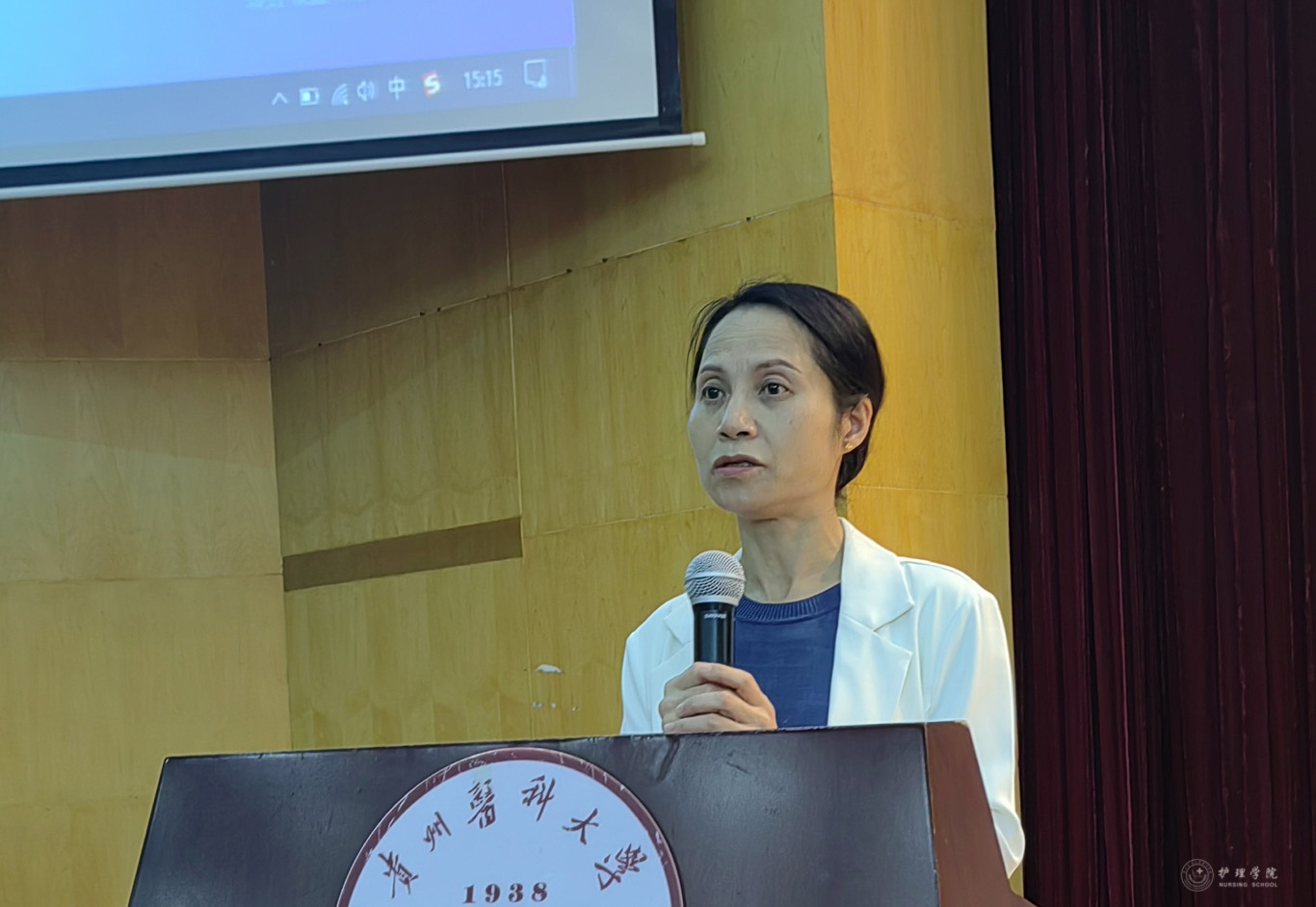 李亚玲为全体同学作临床实习指导,她指出,毕业临床实习是学生走向护理工作岗位前对所学的专业理论及技能的一次全面检验,希望全体同学珍惜实习时光,通过毕业实习提高素质,在实习中开阔眼界、锤炼自我,为未来的职业生涯打下坚实基础。
