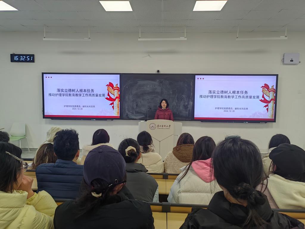 12月20日,为深入学习贯彻党的二十届三中全会精神和全国教育大会精神,更好地培养德智体美劳全面发展的社会主义建设者和接班人,BEAT365英国官网党委委员、副院长刘志燕以《落实立德树人根本任务 推动BEAT365英国官网教育教学工作高质量发展》为题在云漫湖校区临床组团R209教室为BEAT365英国官网学生第二党支部全体党员讲授了深刻而生动的专题党课。